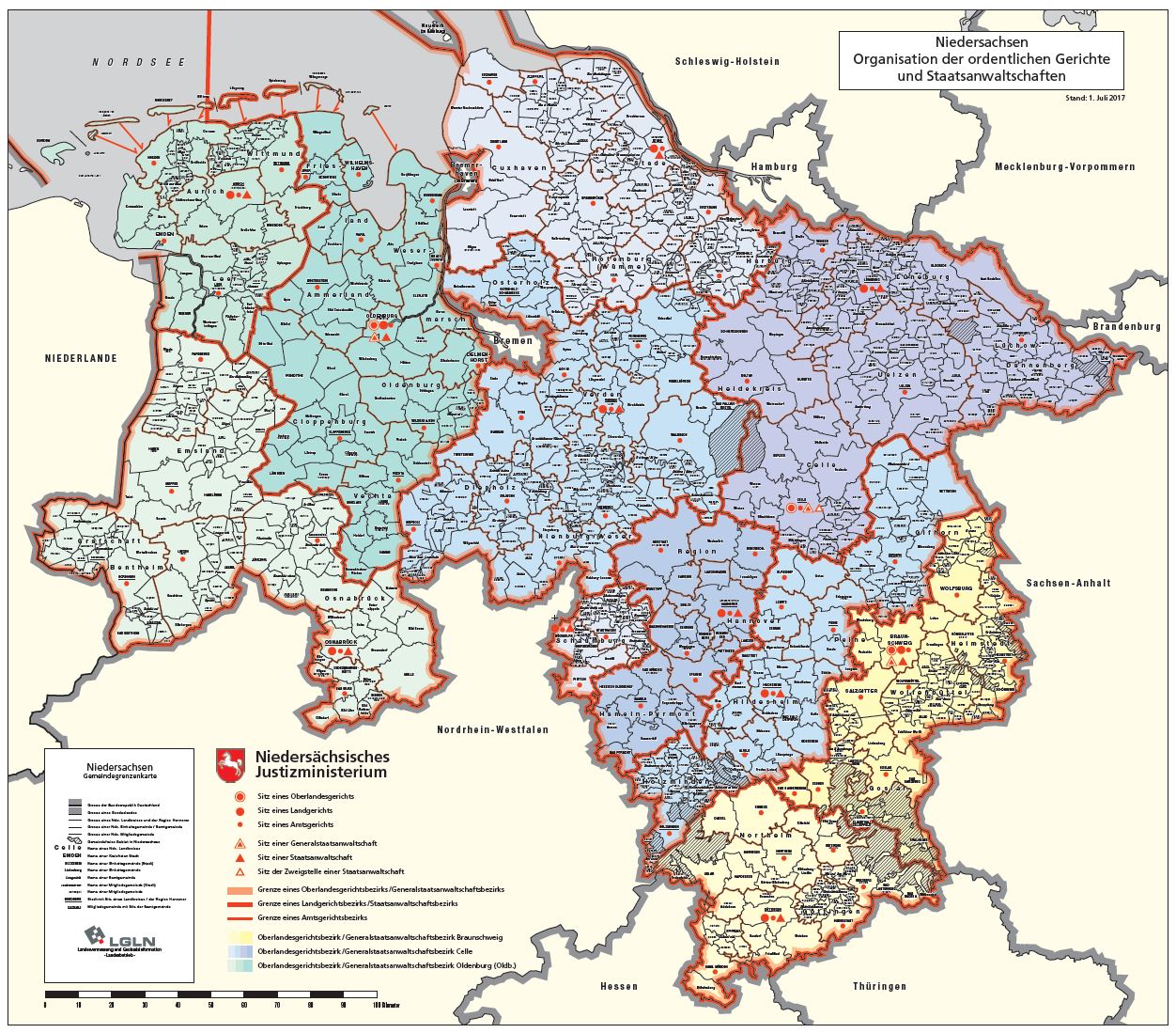 Zu unserem Geschäftsbereich gehören die Staatsanwaltschaften Bückeburg, Hannover, Hildesheim, Lüneburg mit Zweigstelle Celle, Stade und Verden.